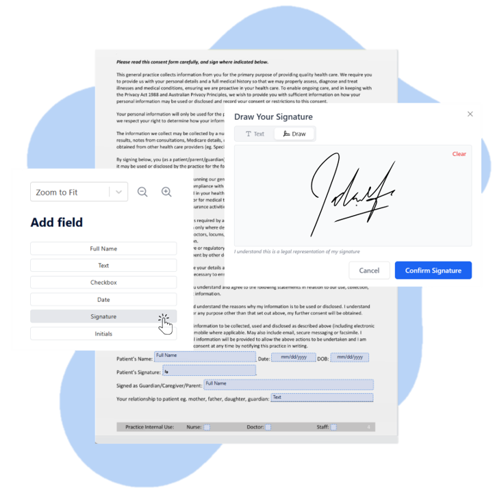 Zentake is designed specifically for document workflows. If your clinic relies on PDFs, Word files, or official paperwork that must be signed, Zentake keeps your documents intact while making them signature-ready.
