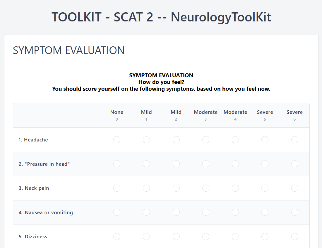 Sport Concussion Assessment Tool 2 (SCAT 2)